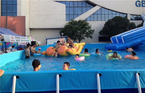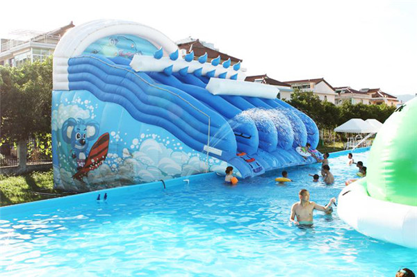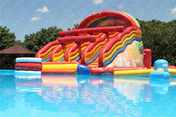 配置:大型支架水池20X30兩組,水滑梯、波浪水滑梯、七彩水滑梯三組。