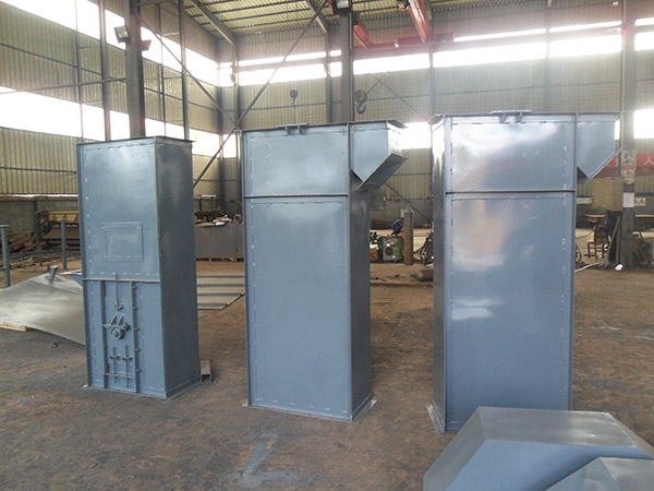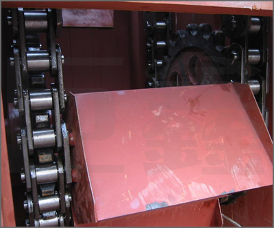同斗式提升機(jī)一樣,NE系列板鏈?zhǔn)教嵘龣C(jī)也是通過料斗把物料從下面的儲(chǔ)藏中舀起,在鏈條的帶動(dòng)下,料斗被提升到頂部,繞過頂輪后向下翻轉(zhuǎn),將物料傾入接受槽內(nèi)。NE系列板鏈?zhǔn)教嵘龣C(jī)一般裝有兩條平行的傳動(dòng)鏈,上或下面有一對(duì)傳動(dòng)鏈輪,下或上面是一對(duì)改向鏈輪。外部機(jī)殼的作用便是防止提升機(jī)中粉塵飛揚(yáng)。