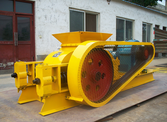 齒輥分級式破碎機由兩臺電動機將動力經減速器減速后分別驅動兩平行安裝的齒輥相向旋轉,當物料落入破碎機雙輥之間時,帶有螺旋齒牙或刀形齒板首先將物料篩分,小于排料粒度的顆粒直接通過而不需要破碎,進入排料溜槽,在垂直應力或剪切力的共同作用下,大塊物料受齒輥齒牙的劈裂、剪切,拉伸被破碎,從排料口排出。