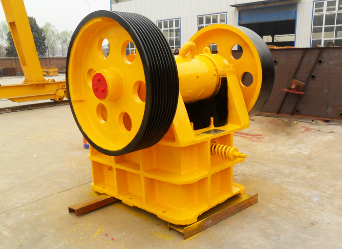 鵝卵石破碎機(jī)的結(jié)構(gòu)主要有機(jī)架、偏心軸、大皮帶輪、飛輪、動顎、側(cè)護(hù)板、肘板、肘板后座、調(diào)隙螺桿、復(fù)位彈簧、固定顎板與活動顎板等組成 ,其中肘板還起到保險(xiǎn)作用。該系列鵝卵石破碎機(jī)破碎方式為曲動擠壓型,電動機(jī)驅(qū)動皮帶和皮帶輪,通過偏心軸使動顎上下運(yùn)動,當(dāng)動顎上升時(shí)肘板和動顎間夾角變大,從而推動動顎板向定顎板接近,與此同時(shí)物料被擠壓、搓、碾等多重破碎;當(dāng)動顎下行時(shí),肘板和動顎間夾角變小,動顎板在拉桿、彈簧的作用下離開定顎板,此時(shí)已破碎物料從破碎腔下口排出,隨著電動機(jī)連續(xù)轉(zhuǎn)動破碎機(jī)動顎作周期性的壓碎和排料,實(shí)現(xiàn)大批量生產(chǎn)。
