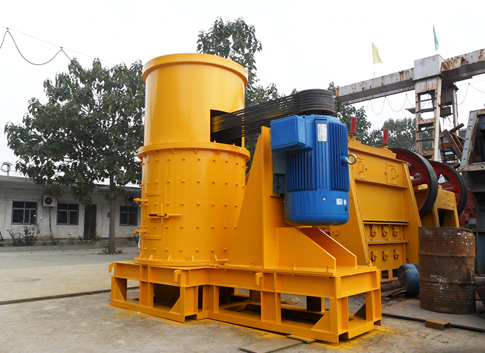 塊狀礦石由進料斗落入上破碎腔內(nèi)上甩料盤上,借助甩料盤的離心力將物料拋向筒體的內(nèi)壁,與安裝在內(nèi)壁上的反擊板猛烈碰撞,同時物料互相撞擊,使之破碎或產(chǎn)生大量發(fā)絲裂紋,接著物料進入錐形轉(zhuǎn)子腔后,在錐形空間呈螺旋狀下落,經(jīng)沖壓、擠壓,使之有裂紋的礦石進一步被破碎 。由于錐形轉(zhuǎn)子與襯板間的斜度,促使較小的物料向下遷移,達到由大到小自動實現(xiàn)分級破碎。物料在錐形轉(zhuǎn)子腔內(nèi)受錘頭的打擊,高速運行塊料再次與反擊板碰撞、物料流相互碰撞使物料經(jīng)打擊、撞擊、剪切、擠壓而粉碎,從而提高破碎效率。從錐形轉(zhuǎn)子腔內(nèi)落下的物料進入下破碎腔內(nèi),以借助甩料盤的離心力將物料進一步破碎成小顆粒。然后物料進入圓柱形轉(zhuǎn)子腔體內(nèi),對已被破碎的物料進行磨削,使物料進一步細(xì)碎,直至破碎成所需要的。